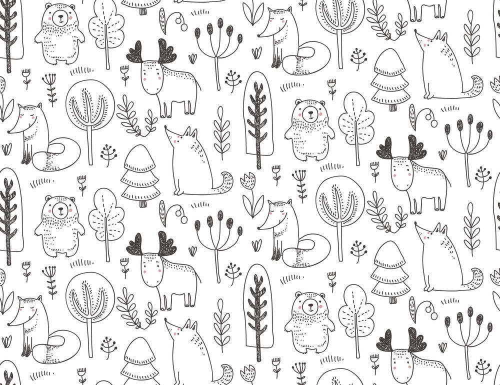 Pattern with Wild Forest Animals